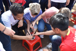 Le tir à la corde, le vélo qui roule le plus lentement, attraper des billes avec des baguettes… autant de challenges qui ont opposé, dans la bonne humeur, les collégiens vietnamiens et français.