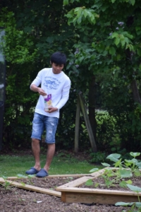 Il bêche, sème et plante avec minutie et précision : il prend son temps. Il arrache les mauvaises herbes avec douceur. Le soir, Thoai fait le tour de « son » jardin avec lenteur. Chaque plant, chaque fleur est regardé avec intérêt.