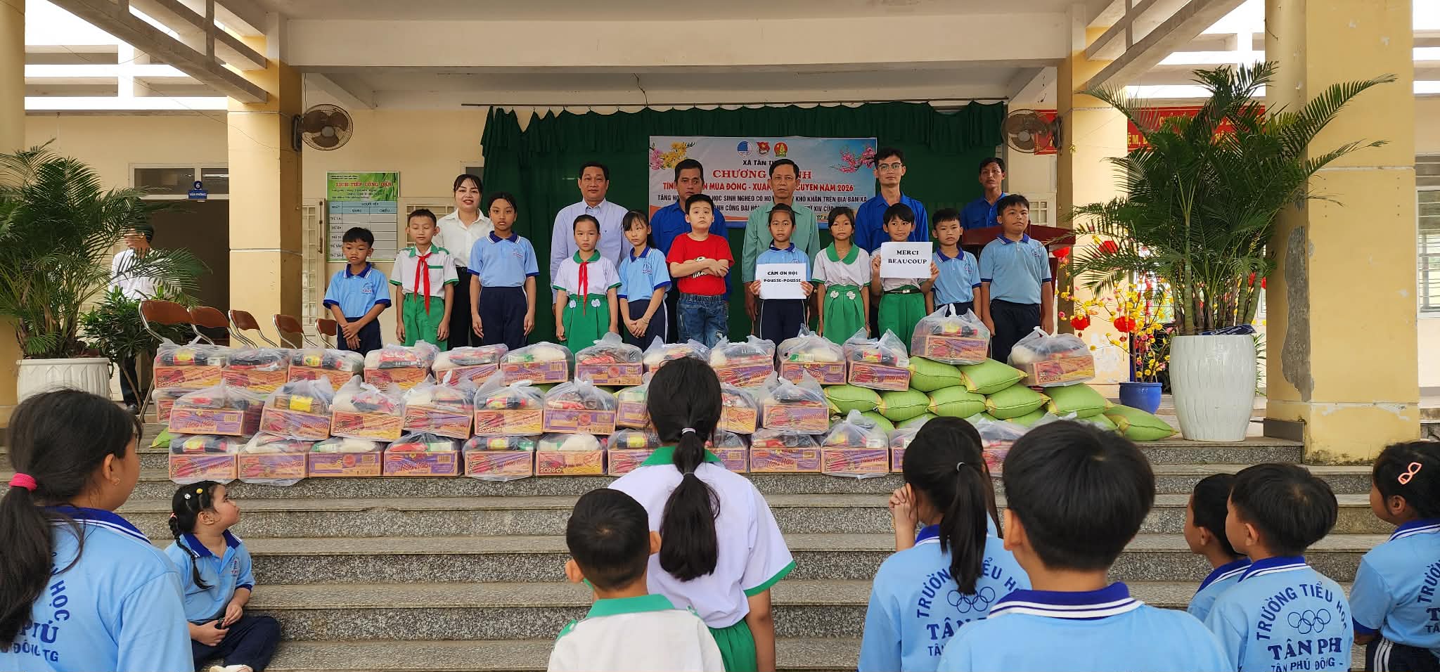 Grâce aux bénéfices de la vente de gâteaux organisée à l’école de Blaison-Saint-Sulpice, l’association Pousse-Pousse a pu offrir des colis alimentaires aux enfants les plus démunis d’une école primaire de Tân Thới, au Vietnam.